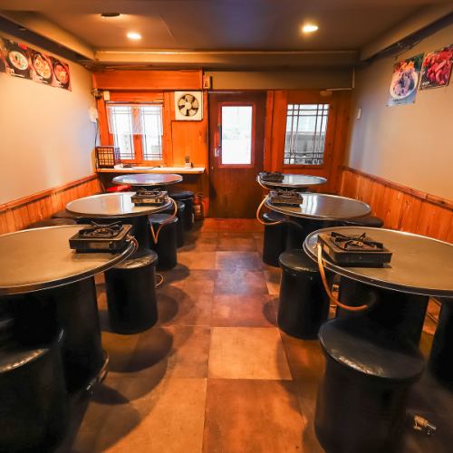丸テーブルと丸椅子が並ぶ、カジュアルで活気ある賑やかな雰囲気♪仲間内での食事や、各種ご宴会などの飲み会にぴったりです◎大人数~中規模宴会、女子会やカジュアルなデートまで、様々なシーンにご利用いただけます!店内の椅子は全て荷物が入れられるので、上着を入れておけばにおいがつくのを防げます◎